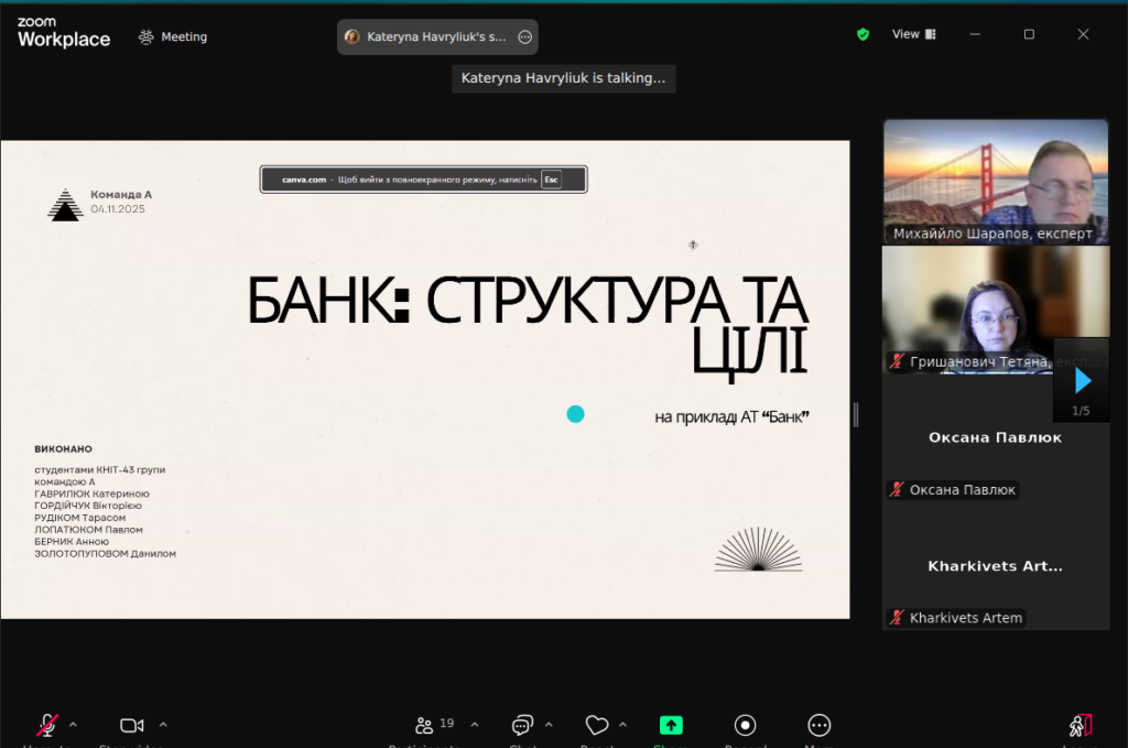 Особливістю заходу стало залучення незалежного експерта, фахівця у галузі фінансового аудиту Михайла Шарапова, який здійснював об’єктивну оцінку представлених рішень. Студенти презентували отримані результати, демонстрували застосовані підходи та відповідали на запитання, що дозволило їм проявити не лише технічну компетентність, а й уміння захищати свою позицію.