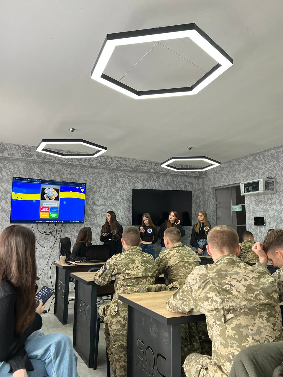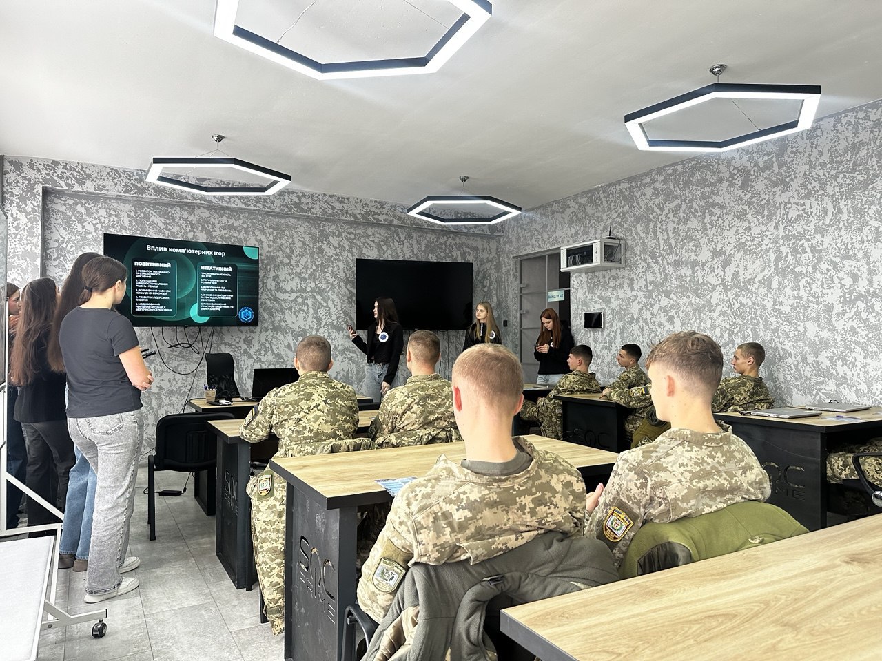 10 листопада для взводу 11.6 (офіцер Мартинюк Д.І.) Волинського військового ліцею імені Героїв Небесної Сотні було організовано інтерактивно-навчальне заняття на тему «Основи кібергігієни сучасного життя військових». Захід провели студенти груп КНІТ-23 та Матем-21 у межах ВОК«Кібертероризм» під керівництвом викладача Оксани Жигаревич.