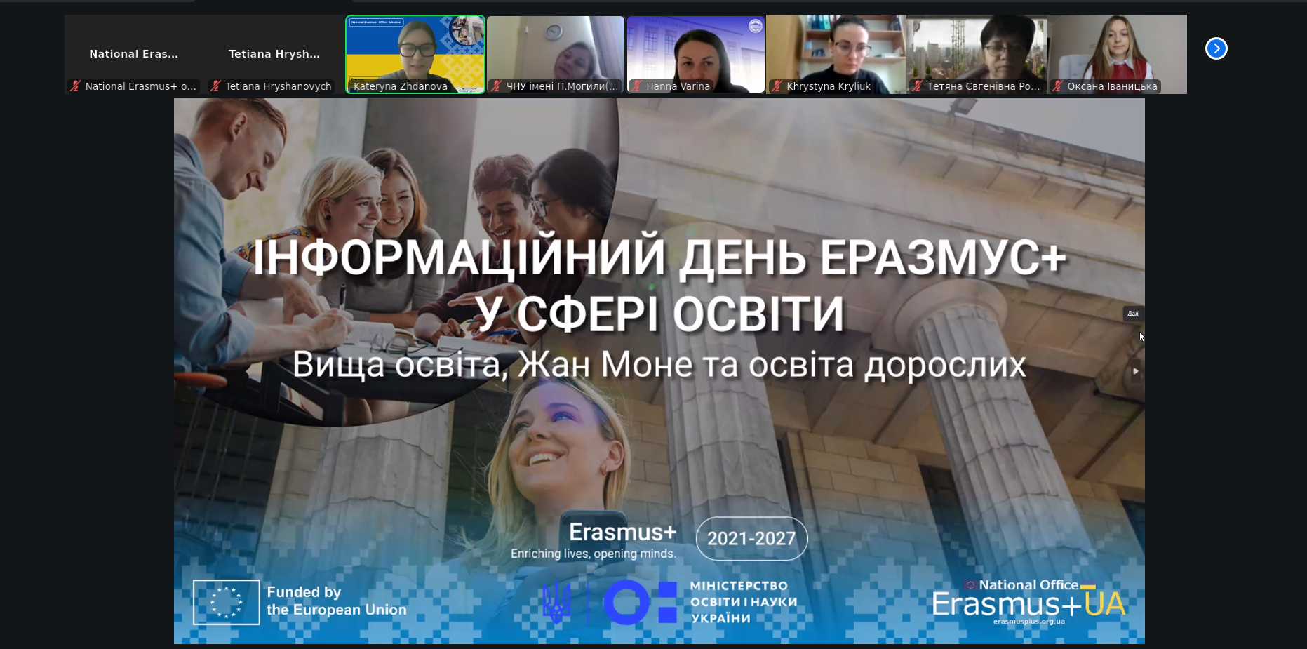 У період з 2 по 12 грудня успішно відбулася серія Інформаційних днів Програми ЄС Еразмус+, організована Національним Еразмус+ офісом в Україні. Захід охопив ключові напрями Програми та зібрав широку аудиторію представників закладів освіти, молодіжних організацій, державних установ і громадського сектору. До онлайн заходів долучились здобувачі освітніх програм, які реалізуються на кафедрі, зокрема, магістранти та здобувачі ступеня PhD.