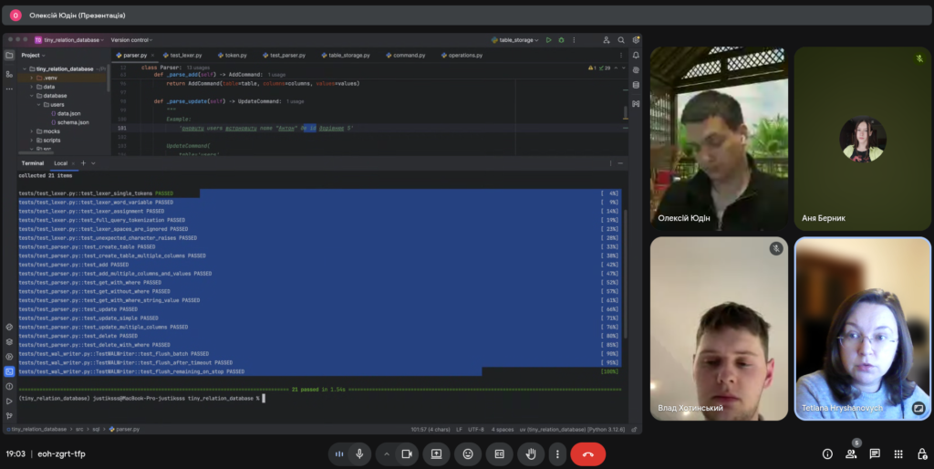 26 лютого відбулось чергове засідання студентської проблемної групи на тему «Розробка прототипу файлової системи збереження даних з журналюванням (Write-Ahead Logging)», спікер – Олексай Юдін, студент 4-го курсу ОП Комп’ютерні науки та інформаційні технології. Під час засідання учасники розглянули принципи побудови файлових систем із підтримкою журналювання, обговорили підхід Write-Ahead Logging як механізм забезпечення цілісності та надійності даних, а також проаналізували ключові етапи розробки прототипу такої системи. Окрему увагу було приділено структурі журналу, алгоритмам відновлення після збоїв і можливим напрямам подальшого вдосконалення реалізації.